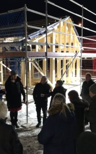 Nu ligger taket på plats och vi är mitt i bygget! Det ville vi självklart fira. Vår version av taklagsfest blev en tacklagsfest, där projektgruppen passade på att tacka bygglaget och alla inblandade för ett strålande jobb hittills. Våra inbjudna gäster fick ta sig en närmare titt på huset, därefter firade vi med ett tårtkalas. Nu är det inte långt till inflytt!