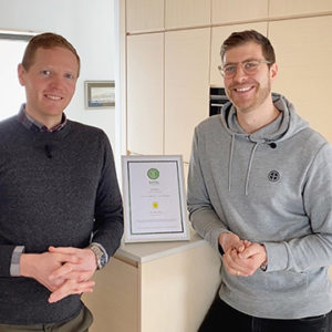 – Det är häftigt att få vara med på ett sådant här projekt, det första småhuset som blir certifierat enligt NollCO2. Verkligen kul, tycker Erik Jäderbrink och Johan Grundström som ansvarat för klimatberäkningarna och arbetet med certifieringarna.